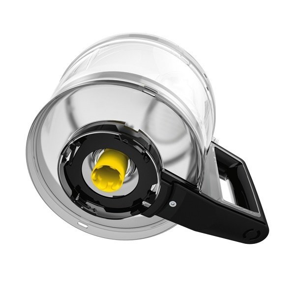 Очень универсальный дополнительный цитрус-пресс для свежих соков, измельчитель для трав, орехов и др. Легко присоединять благодаря цветному кодированию на аксессуарах и самой машине