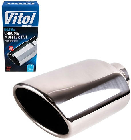 Насадка на глушитель от торговой марки Vitol изготовлена на современном высокоточном оборудовании, что гарантирует высокое качество исполнения изделия. Диаметры насадок соответствуют самому распространенному размеру выхлопных труб у глушителей легковых и грузовых автомобилей. Насадка на глушитель несет в себе два свойства, первое это защита выхлопной трубы от коррозии, практически полностью, исключая контакт выхлопной трубы с внешне средой, второе свойство - это улучшение эстетического вида автомобиля.