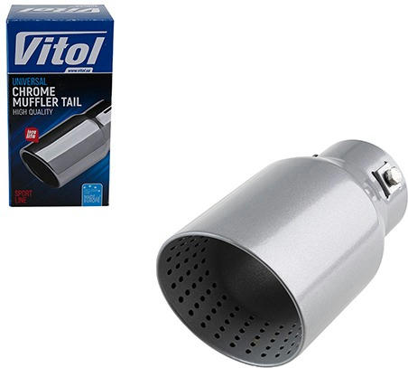 Насадка на глушитель от торговой марки Vitol изготовлена на современном высокоточном оборудовании, что гарантирует высокое качество исполнения изделия. Диаметры насадок соответствуют самому распространенному размеру выхлопных труб у глушителей легковых и грузовых автомобилей. Насадка на глушитель несет в себе два свойства, первое это защита выхлопной трубы от коррозии, практически полностью, исключая контакт выхлопной трубы с внешне средой, второе свойство - это улучшение эстетического вида автомобиля.