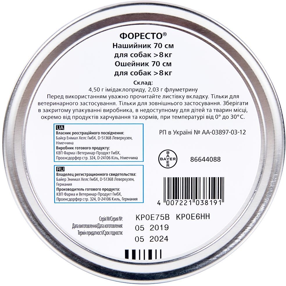 - Ошейник для собак Bayer Foresto от блох и клещей 70 см