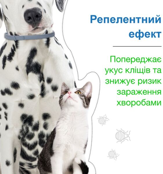 Инновационный ошейник для длительной защиты собак и кошек от блох, волосоедов, иксодовых клещей. Лечение и профилактика аллергического блошиного дерматита. Ошейник предотвращает развитие личинок блох в окружающей животное среде. Ошейник эффективен против различных фаз развития иксодового клеща: личинка, нимфа, имаго. Лечение заражения вшами и волосоедами кошек и собак.