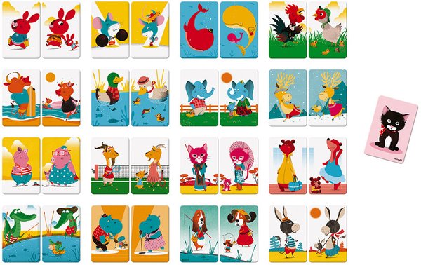 Безумно интересная развивающая игра Janod Мистигри, для детей. Я как только увидела её в интернет рекламе, сразу же решила заказать для своих детей. Суть заключается в составлении семейных пар животных. Картинки очень забавные, все звери в одежде, выглядят смешно и весело. Но есть одна карта с черным котом. Вот у кого она остается, тот и проигрывает. Нравится, что карточки все из плотного картона, не задираются по углам и не заламываются. А рисунки очень яркие. Такой игровой процесс способствует хорошей эмоциональной разрядке, развивает логику, и помогает познакомиться самым маленьким с видами животных. Заказывала на данной интернет площадке.
