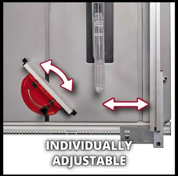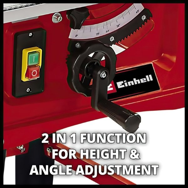 - Регулировка пильного диска 2 в 1 (высота, наклон 0 ° - 45 °)
