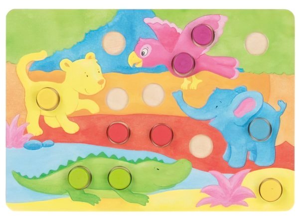 С уверенностью могу сказать, что с такой игрой, как разноцветное лото от гоки, очень просто научить ребенка различать цвета. В комплекте есть много частей разного цвета и пластина с рисунками, где пропущены те самые части. Малыш быстро соображает куда какой цвет нужно положить. Рисунки сделаны красивыми и привлекают внимание ребенка.