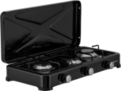 Модель GTC-NS3013B отличается надежностью и долговечностью, ведь корпус плиты, покрытый черной эмалью, полностью стальной. Горелки изготовлены из алюминия, а поворотные переключатели для регулировки мощности горения, встроенные на фронтальной поверхности, также имеют алюминиевые вставки. Кроме того, для удобства предусмотрены металлическая крышка для накрытия варочной поверхности после завершения приготовления и противоскользящие ножки, обеспечивающие устойчивость плиты на поверхности.