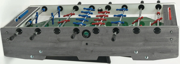 - Игровое поле из закаленного стекла толщиной 5 мм. Белые линии на зеленом фоне нанесены методом шелкографии, воспроизводя футбольное поле.