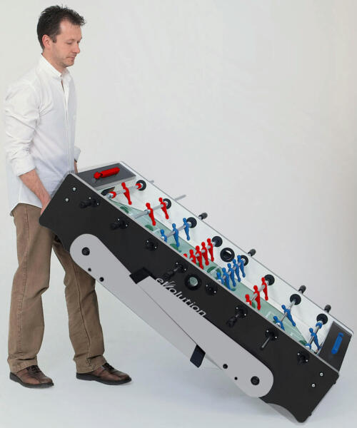 Изысканный настольный футбол Garlando Foldy Evolution со складными ножками для компактного хранения - идеальный вариант для небольшого помещения. Прочная конструкция стола имеет элегантное сочетание черного и серебристого цветов, вдохновленного стилем хай-тек. Модель изготовлена непосредственно в Италии из высококачественных материалов, обеспечивающих долговечность и удовольствие от игры, с учетом конкретных требований, которым должен соответствовать футбольный стол. Этот стол характеризуется надежностью и устойчивостью, что делает его пригодным для игры в любом месте: от дома до офиса и бара.