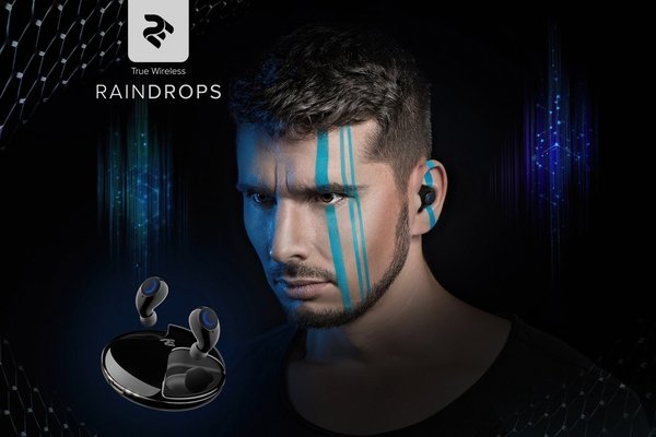 Полностью беспроводные наушники с кейсом для подзарядки, микрофоном и влагозащитой IPX5. Для подключения используется Bluetooth 5.0, а время автономной работы наушников составляет 5 часов. Кейс способен полностью зарядить наушники 3 раза, что увеличивает общее время работы RainDrops до 15 часов. Магнитная фиксация позволяет легко поместить вкладыши в кейс, а при извлечении происходит автоматическое соединение наушников с устройством. 2E RainDrops укомплектованы силиконовыми амбушюрами трех размеров и кабелем USB Type-C для зарядки кейса.