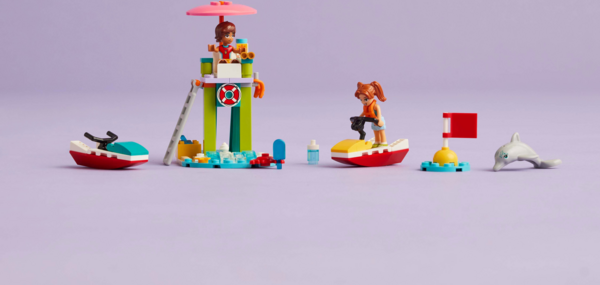 Позвольте детям развивать свои строительные навыки, весело проводя время с этим игрушечным водным скутером-спасателем LEGO Friends Beach Water Scooter.