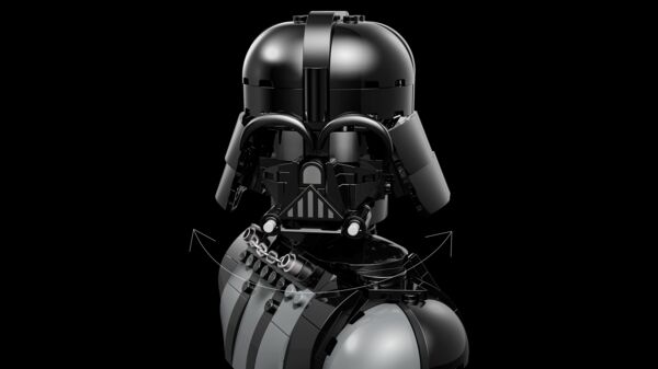 Поставьте свою статую Дарта Вейдера на сборную подставку с именной табличкой. Поворачивайте его голову влево и вправо и вращайте весь бюст на подставке, чтобы рассмотреть со всех сторон. Слегка перестройте подставку и создайте дополнительное пространство для минифигурки Дарта Вейдера, входящей в набор.