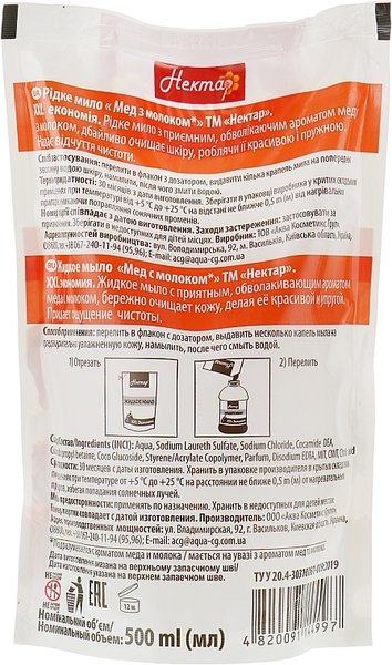 Жидкое мыло Нектар Мед с молоком 500 мл фото 2