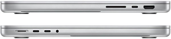 Слот для карт SDXC позволяет переносить фото и видео. Порт HDMI — подключать телевизоры и мониторы. Выход 3,5 мм автоматически распознаёт наушники с высоким импедансом и корректирует параметры. Три порта Thunderbolt 4 служат для подключения высокоскоростных периферийных устройств. А к разъёму питания MagSafe 3 легко примагнитить кабель для быстрой зарядки.