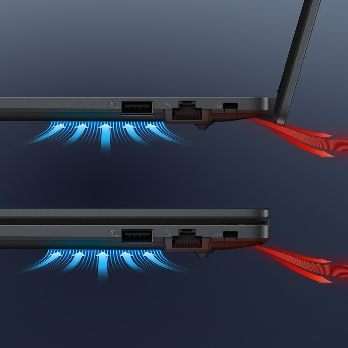 Система охлаждения ASUS ExpertCool BM1 гарантирует стабильную работу ноутбука в любой ситуации и при любой нагрузке. При этом теплый воздух выводится наружу сквозь вентиляционную решетку в задней части корпуса, подальше от руки с мышкой.