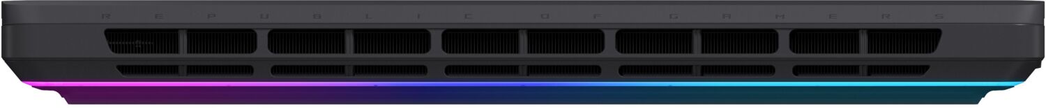 Ноутбук 2025 ROG Strix G16 оснащен RGB-подсветкой, обрамляющей всю нижнюю панель корпуса, создавая яркое свечение на столе. Эта подсветка может синхронизироваться с другими периферийными устройствами ROG.