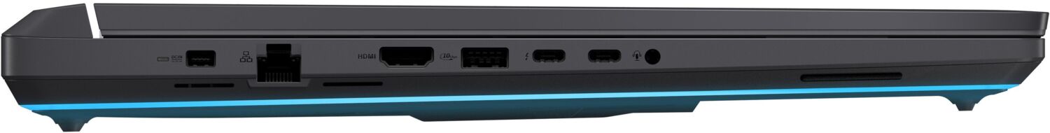 Наличие разнообразных портов позволяет подключить к ноутбуку мышь, гарнитуру, внешний монитор и т.д., поэтому ROG Strix G18 получил максимально широкий набор таких интерфейсных портов. На его правой грани расположены два порта USB Type-A, а на левой - большинство других разъемов: аудиоразъем, порт Thunderbolt 4, один порт USB Type-A, один порт USB Type-C, HDMI 2.1, порт Ethernet 1 Гбит/с и порт питания. Если представить себе идеальную боевую станцию, то ROG Strix G18 - это ее воплощение в реальность.