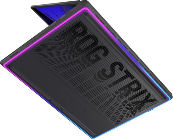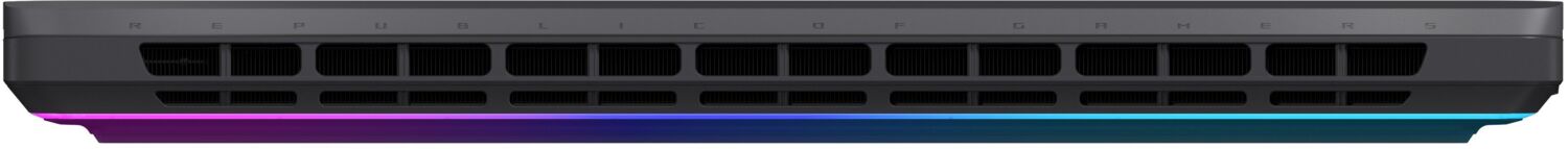 Ноутбук 2025 ROG Strix G18 оснащен RGB-подсветкой, обрамляющей всю нижнюю панель корпуса, создавая яркое свечение на столе. Эта подсветка может синхронизироваться с другими периферийными устройствами ROG.