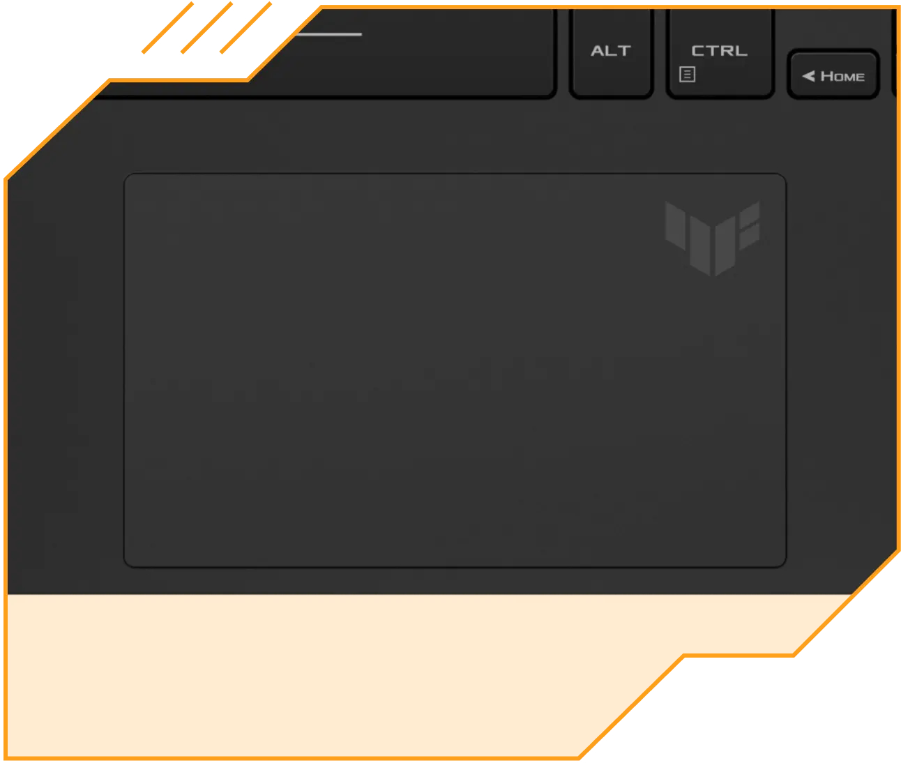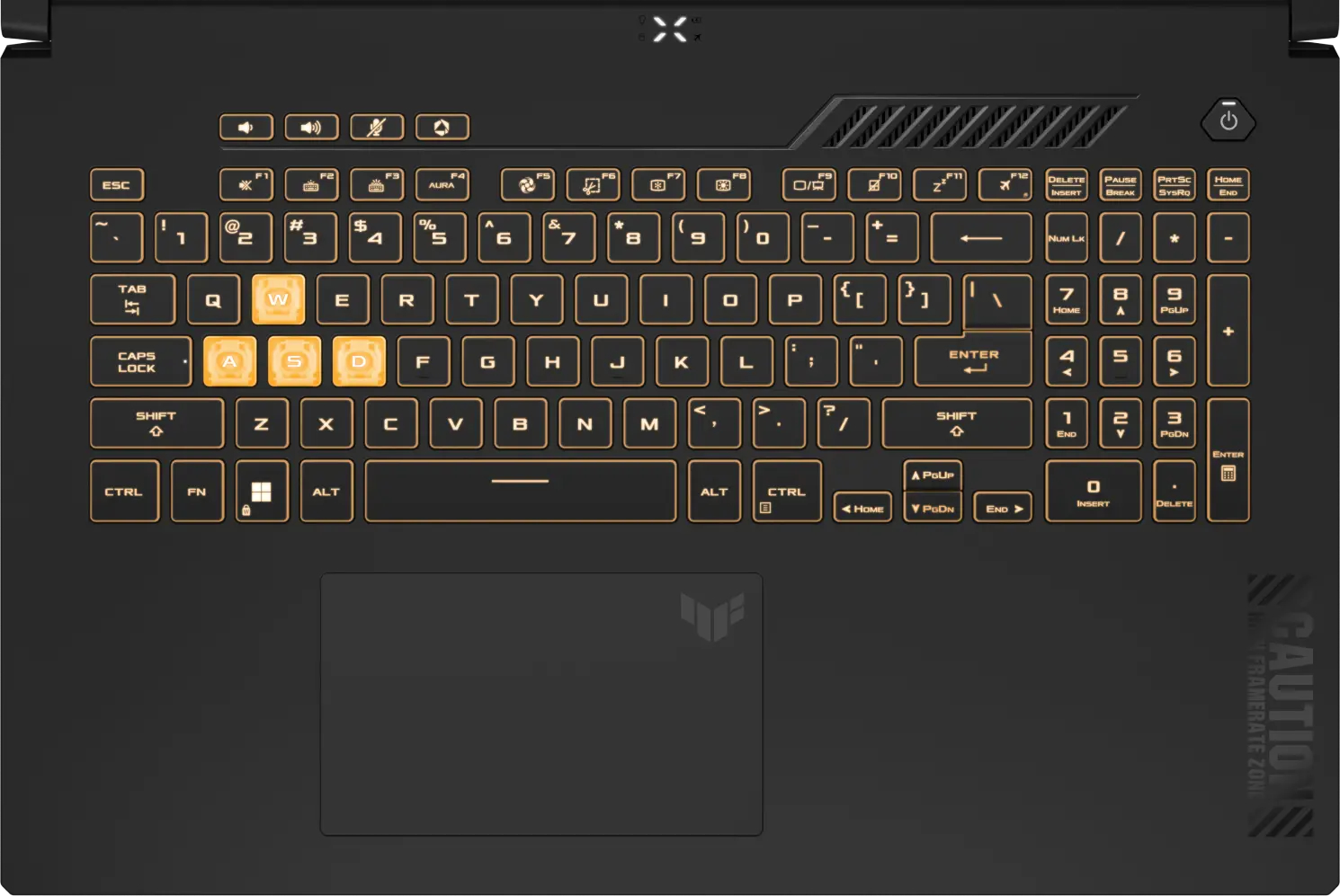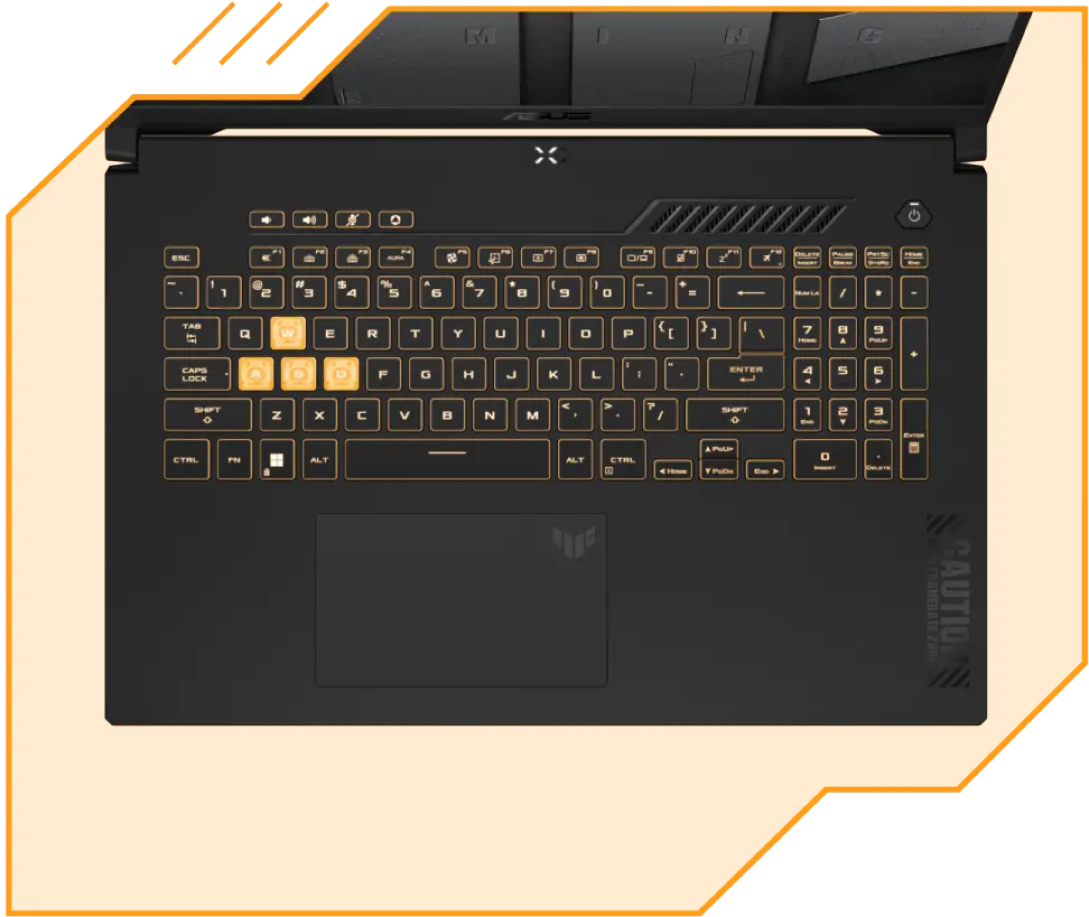 Клавиатура также была переработана с учетом эстетики меха-аниме. Предупреждающая надпись, полученная из вселенной TUF Gaming, как будто перемещает вас в кресло пилота, который управляет игровой машиной с помощью большого тачпада, имея при этом еще больше свободы действий.