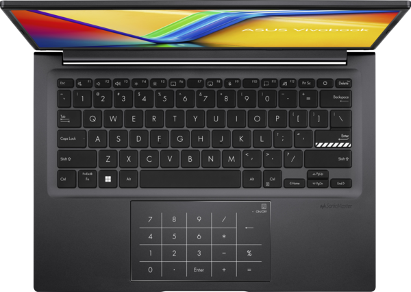 В компактных мобильных компьютерах нет места для цифрового блока клавиатуры, однако Vivobook 14 наделен уникальным тачпадом ASUS NumberPad 2.0. Достаточно коснуться соответствующей пиктограммы - и на его поверхности появятся цифровые клавиши для быстрого ввода чисел. Кроме того, клавиатура Vivobook 14 имеет подсветку, поэтому на этом ноутбуке можно с комфортом работать при любом освещении.