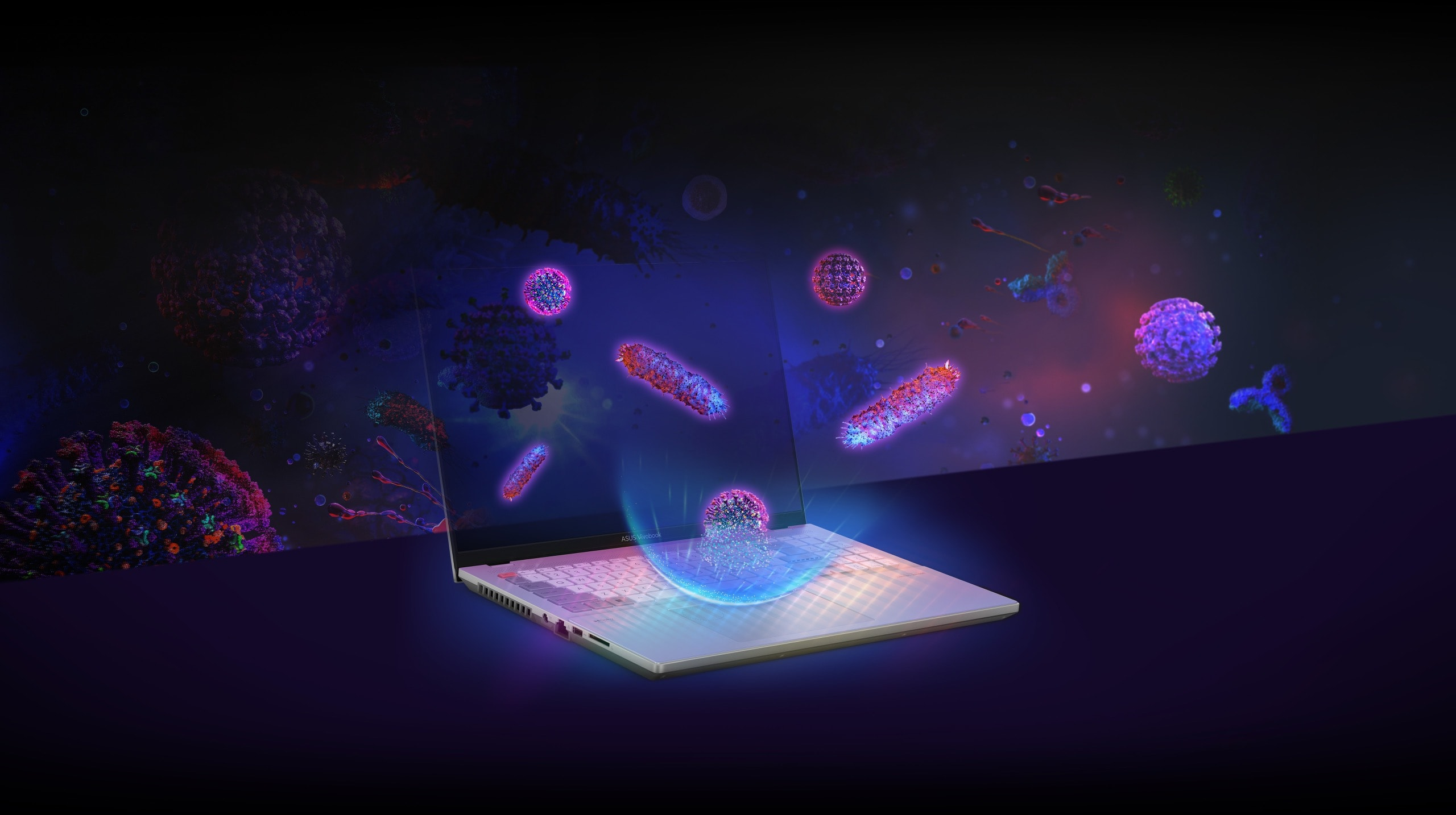 Покрытие ASUS Antimicrobial Guard Plus наносится на участки ноутбука, к которым часто прикасаются, чтобы поддерживать его чистоту. Эта технология использует более массивную обработку, которая подавляет вирусы и бактерии. Согласно проведенным исследованиям - в соответствии с требованиями стандартов ISO 21702 и 22196, - такая обработка подавляет рост вирусов и бактерий на 99% и более в 24-часовой период. Штаммы, которые использовались для тестов, включали SARS-CoV-2 (COVID-19), H3N2 (грипп A) и бактерию E. Coli.