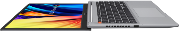 Vivobook S 15 OLED выделяется среди обычных ноутбуков своим дизайном и привлекает взгляд еще до того, как раскрывается его крышка. Оригинальные декоративные элементы есть и внутри - клавиша Enter выделена полосками, а клавиша ESC - оранжевым цветом. Крышку ноутбука можно раскрывать на 180 градусов, кладя ее на стол. Это особенно удобно при обсуждении проектов. Финальным штрихом в дизайне ноутбука является участок под клавиатурой, украшенный слоганом серии Vivobook.
