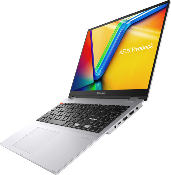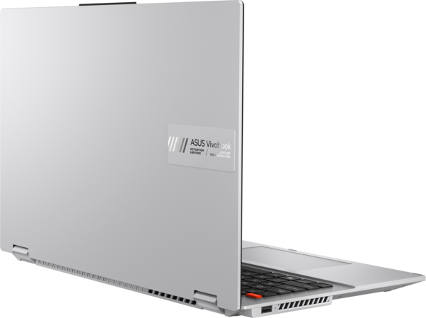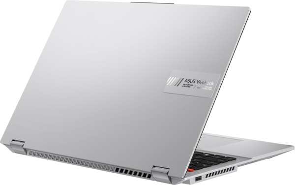 Vivobook S 16 Flip отличается уникальной рельефной вставкой с логотипом, а также полосочными акцентами на клавише Enter и ярко-оранжевой клавишей ESC. Кроме того, он имеет новый дизайн портов в виде блоков. Что касается цветов, то на выбор предлагается очаровательный черный (Midnight Black) и изысканный серебристый (Cool Silver) варианты. Корпус Vivobook S 16 Flip достаточно тонкий, чтобы поместиться в любой рюкзак и легкий, чтобы его можно было без труда переносить одной рукой.