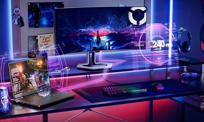 Lenovo AI Engine+ дает возможность побеждать благодаря определению сценариев в реальном времени для оптимизации FPS и разумного распределения ресурсов. Ноутбук обеспечивает безупречную производительность и точно настраивает работу центрального и графического процессора для игры на самом высоком уровне. Управляйте своим игровым процессом с точностью, которую обеспечивает ИИ, и доминируйте в каждом мгновении на поле боя.