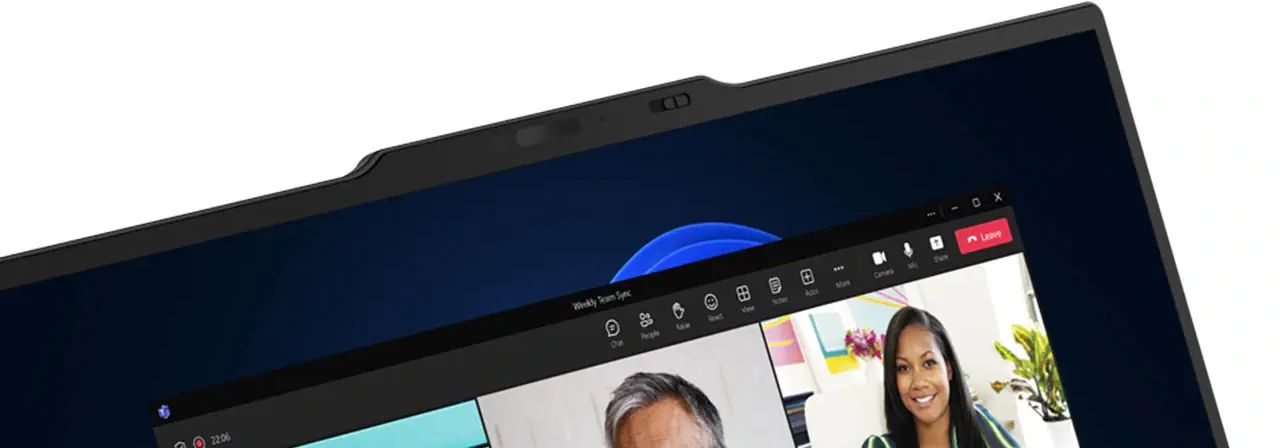С легкостью открывайте ноутбук с помощью коммуникационной панели в верхней части дисплея. Панель также дополнена защитной шторкой вебкамеры. Что касается звука, ноутбук ThinkPad X1 Carbon Gen 12 оснащен двумя микрофонами с охватом 360 градусов и системой шумоподавления на основе искусственного интеллекта в сочетании с технологиями Dolby Voice и Dolby Atmos, а также имеет сертификат совместимости с Zoom. Все это позволит вам наслаждаться превосходным звучанием во время звонков с коллегами, прослушивания музыки или просмотра видео.