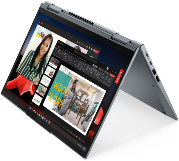 Ноутбук ThinkPad X1 Yoga Gen 8 «2-в-1» оснащен шарниром, который вращается на 360 градусов и позволяет быстро переключаться между различными режимами использования: ноутбук, планшет, презентация и консоль. Эффективно работай в любых условиях, выбирая оптимальный режим в зависимости от выполняемой задачи. Переходи от набора текста на клавиатуре к созданию набросков, подписанию документов или добавлению заметок на экране с помощью стилуса с возможностью подзарядки, который хранится в специальном отсеке внутри корпуса. Или просто управляй ноутбуком с помощью сенсорного интерфейса в режиме планшета.