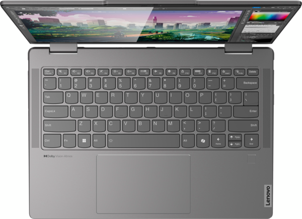 Благодаря чрезвычайно четкому изображению на большом дисплее и насыщенному звуку, ноутбук 2-в-1 Yoga 7 идеально подходит для просмотра фильмов и работы над инновационными проектами. Широкий охват цветового пространства обеспечивает максимально яркое и реалистичное изображение, а технология Dolby Vision отвечает за тщательность проработки мельчайших деталей и невероятную контрастность. Кроме того, фронтальные динамики с поддержкой Dolby Atmos формируют насыщенный звук, полностью погружающий вас в атмосферу происходящего на экране. А с помощью сенсорной стеклянной панели с распознаванием 10 точек касания вы можете легко управлять системой.