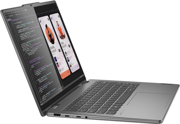 Благодаря чрезвычайно четкому изображению на большом дисплее и насыщенному звуку, ноутбук 2-в-1 Yoga 7 идеально подходит для просмотра фильмов и работы над инновационными проектами. Широкий охват цветового пространства обеспечивает максимально яркое и реалистичное изображение, а технология Dolby Vision отвечает за тщательность проработки мельчайших деталей и невероятную контрастность. Кроме того, фронтальные динамики с поддержкой Dolby Atmos формируют насыщенный звук, полностью погружающий вас в атмосферу происходящего на экране. А с помощью сенсорной стеклянной панели с распознаванием 10 точек касания вы можете легко управлять системой.