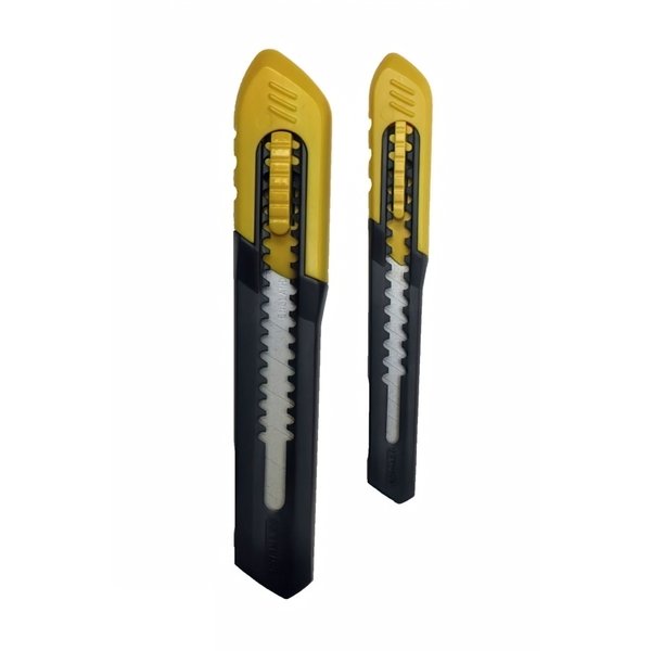 Корпус изделия и режущий инструмент изготовлены из высококачественного пластика. Материал устойчив к коррозии, нагрузкам, прослужит долгое время, сохраняя первоначальные возможности. Ширина рабочего полотна составляет 18 мм, чего вполне достаточно для проведения регулярных работ. Система открытия и закрытия – автозамок. Благодаря этому устройство без проблем настроить и легко зафиксировать лезвие на нужной длине.