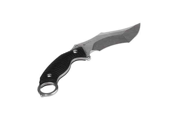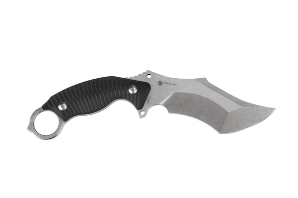 Нож Ruike F181 представляет собой модель с фиксированным клинком. Это нож разновидности "керамбит", лезвие которого имеет сложную форму, предназначенную для тактики. Нож представлен в двух вариантах цвета, черном и песочном. Модель базируется на уже знакомом потребителям ноже P881. F181 может быть использован для активного отдыха. В основе клинка - сталь марки Sandvik 14C28N, рукоять изготовлена из стеклотекстолита G10. Сталь Sandvik 14C28N характеризуется диапазоном твердости в 55-62 единицы по Роквеллу. Она имеет сбалансированный химический состав, что обеспечивает высокую твердость и устойчивость к ржавчине. Режущая кромка с такой сталью надолго сохраняется острой. Сталь также очень прочная, а лезвие, в случае необходимости, легко поддается переточке. Из нее часто делают ножи шефские, а также модели для рыбаков и охотников. Стеклотекстолит достаточно прочный и устойчивый к повреждениям материал, хорошо переносит влагу, отлично поддается окрашиванию. Рукоятка с таким материалом в составе будет иметь долгий срок службы и хорошо противостоять воздействию различных факторов. Нож F181 имеет полную длину 22,9 см, а весит он 198 г. Длина клинка составляет 11,5 сантиметра, длина рукояти - 11,4 см.