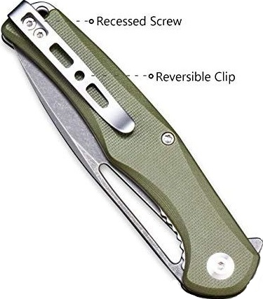 Лезвие классической формы Drop-Point точно справится с любыми повседневными задачами, Есть специальный вырез и флиппер, позволяющий быстро раскрыть нож. Отверстие в верхней части лезвия выполняет двойную функцию: делает лезвие легче и обеспечивает дополнительную поддержку для большого пальца, поэтому нож легко открывать одной рукой. Ручка выполнена из G10, имеет удобную форму, важная особенность - шероховатая текстура, благодаря чему нож хорошо держать в руках. Ручка дополнительно имеет клипсу глубокой посадки. Этот сплав отлично противодействует коррозии, характеризуется хорошей износостойкостью. В целом, по свойствам сплав близок к 420HC. Стоит отметить, что твердость закалки составляет до 58 HRC. Стеклотекстолит G10 - это композитный материал на основе стеклоткани и эпоксидной смолы. Он прочный, влагонепроницаемый и ударопрочный. Хорошо поддается обработке. Ручка имеет приятную текстуру, едва заметную, которая обеспечивает надежный захват. Стоит отметить, что за ручкой скрыта пара пластин с трапециевидными блестящими фразерами. Такой складной нож можно назвать универсальным, может использоваться во время активного отдыха, в походе, путешествиях и в повседневной жизни. Он имеет эргономичный дизайн и удобную систему раскрытия. Поэтому использование такого ножа - одно удовольствие.