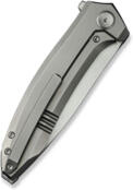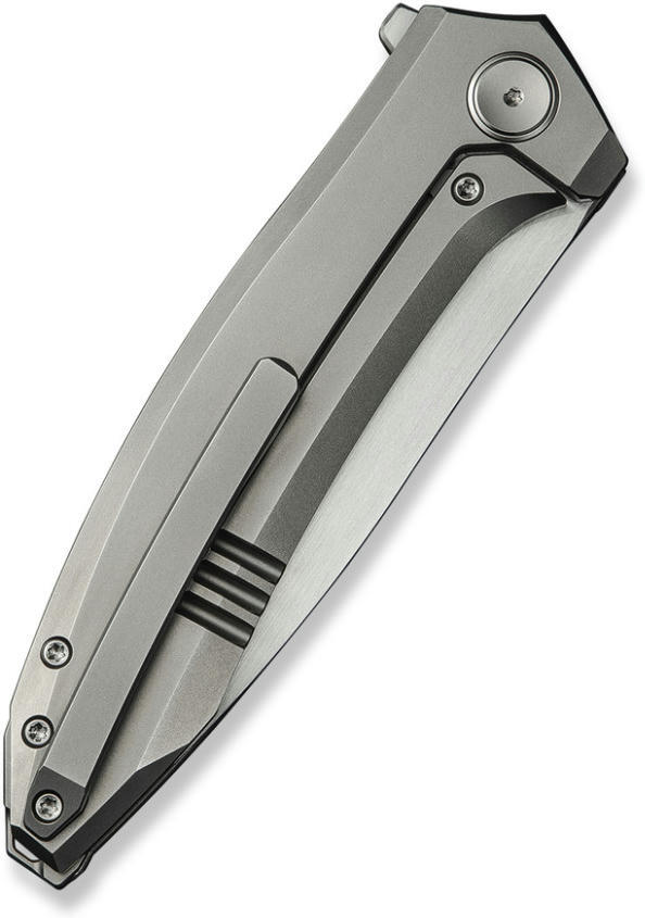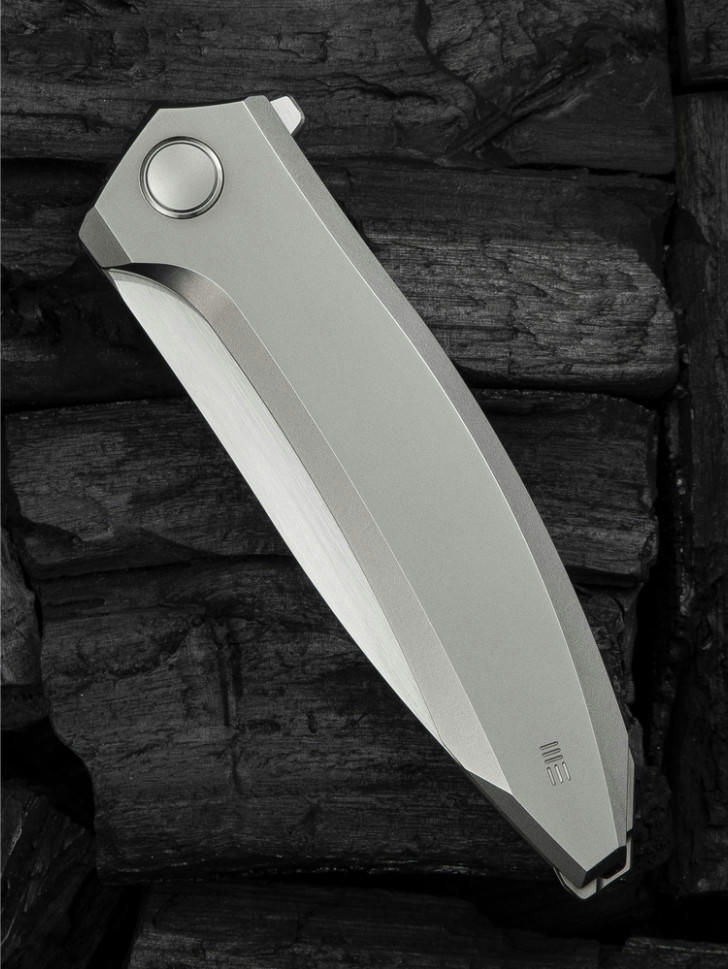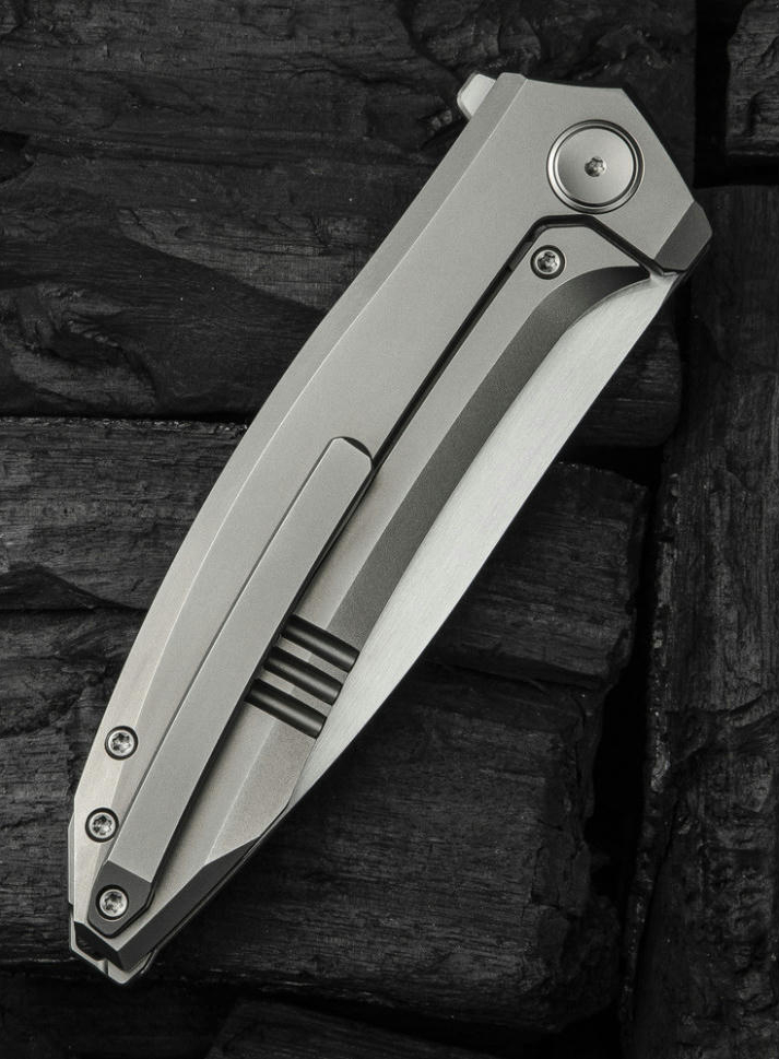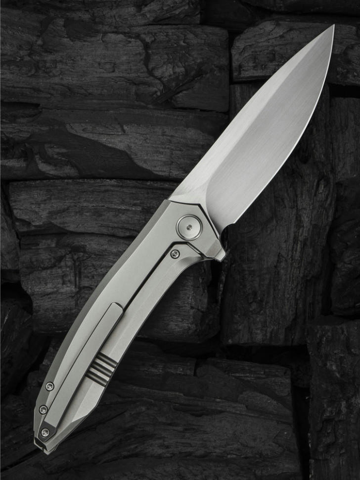 - Рукоятка изготовлена из титана 6AL4V - сплава, сочетающего исключительную прочность с полной устойчивостью к коррозии, даже в условиях регулярного контакта с влагой, кислотами и агрессивными средами. Благодаря малому весу титана общая масса ножа составляет всего 127,2 г, что делает его комфортным для ежедневного ношения.