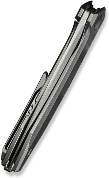 С правой стороны рукояти закреплена однопозиционная титановая клипса для ношения инструмента на поясе в положении острием вверх (Tip-Up). Часть спейсера, выступающая в хвостовой части, повышает функциональность ножа: она может использоваться как импровизированный стеклобой, и имеет отверстие для паракорда или страховочного темляка. Weknife Acuminal отличается универсальностью благодаря клинку Drop Point с плавным понижением линии обуха к острию. Форма имеет длинное лезвие с прямой заточкой для аккуратной резки и достаточно тонкий кончик для осуществления аккуратных проколов. Нож принадлежит к премиальному сегменту благодаря высококлассным материалам, обеспечивающим превосходные эксплуатационные характеристики.