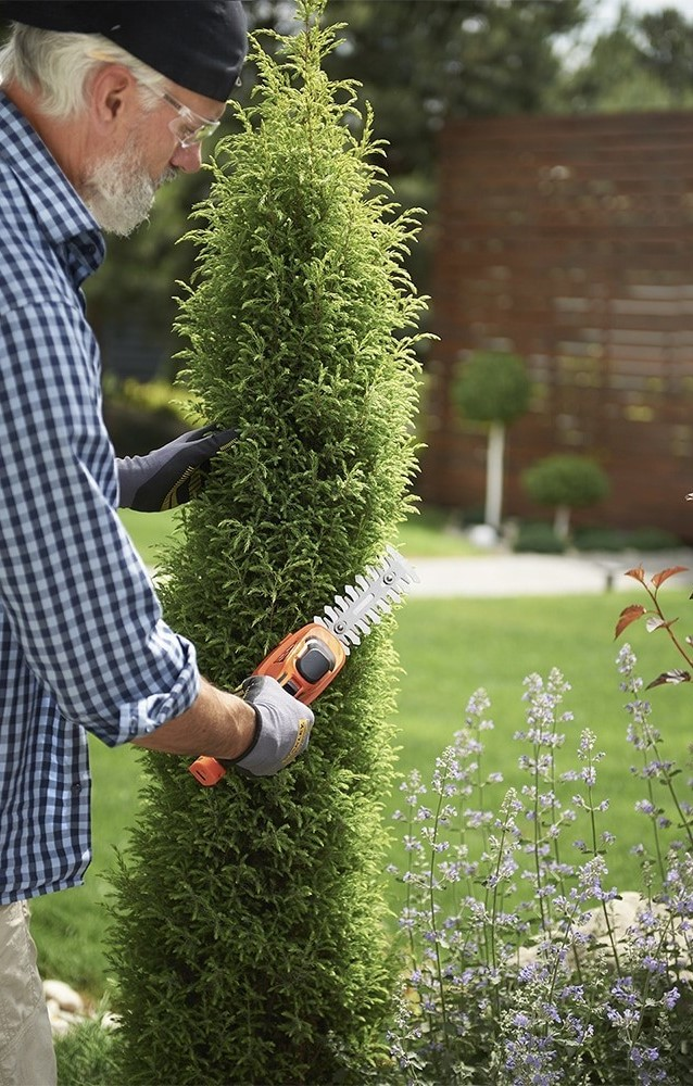 Насадка ножниц применяется для подравнивания травы вдоль дорожек и бордюров. Насадка кустореза длиной 12 см используется для обработки молодых побегов и декоративных растений.