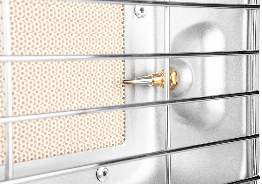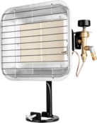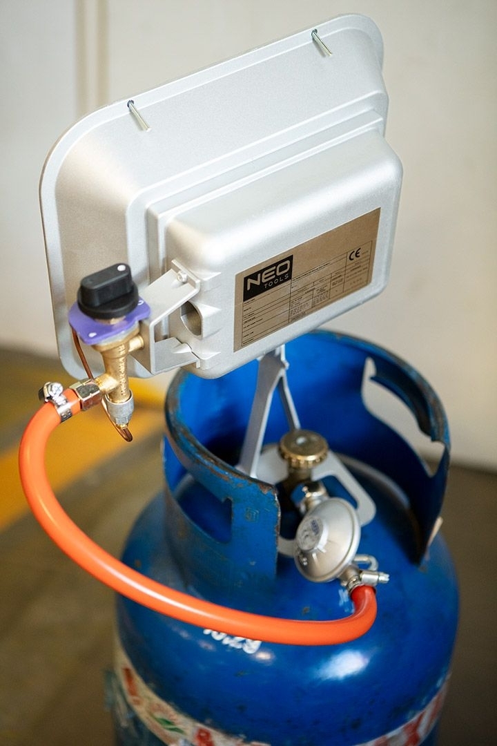 Газовый обогреватель Neo Tools идеально подходит для обогрева на открытом воздухе. Это устройство с номинальной мощностью 4600 Вт, предлагающее работу на двух ступенях мощности (2800 Вт и 4600 Вт). Расход газа составляет 218-335 г/час при давлении газа 37 мбар. Он имеет рефлектор и газовое сопло 0,9 мм. Дальность излучения обогревателя составляет 1 м. Газовый радиатор оснащен ручным зажиганием, регулятором и шлангом длиной 40 см. Его размеры составляют 34х13х40 см.