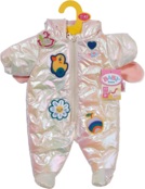 Утепленный комбинезон Baby Born в блестящем перламутровом стиле - идеален для зимних прогулок. Модный вид дополняют яркие патчи, мягкие ушки зайчика и сказочная атмосфера. Этот образ создан для тепла, игры и волшебных приключений в снегу.
