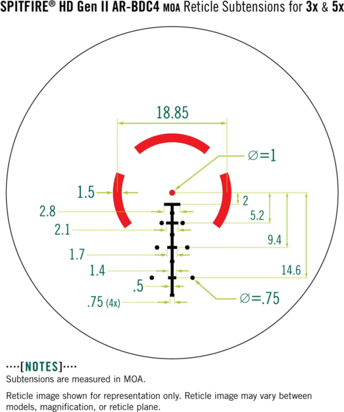 Более компактные, злобные и оснащенные модернизированной оптической системой HD для значительно меньшего и легкого тактического решения, новая модель Spitfire HD Gen II 5x позволяет выбрать идеальную высоту установки. Теперь, благодаря совместимости с ночным видением, мечта стрелка стала реальностью: сетка в стиле BDC, рассчитанная на использование самых популярных патронов 5,56 для быстрого захвата цели. Конструкция призмы и вытравленная сетка решают проблемы искажения для пользователей, страдающих астигматизмом. Кроме того, призматическая конструкция и прицельная сетка с гравировкой дают вам сверхбыстрое прицеливание, но при этом функционируют без подсветки, а барабаны открыты - никаких заглушек и зацепов. Сетка AR-BDC4 создана для максимально эффективного использования патрона 5.56 в вашей AR винтовке, обеспечивая как быстрое обнаружение цели, так и градуированную шкалу елочку для внесения поправок по горизонту на дистанции до 650 ярдов.