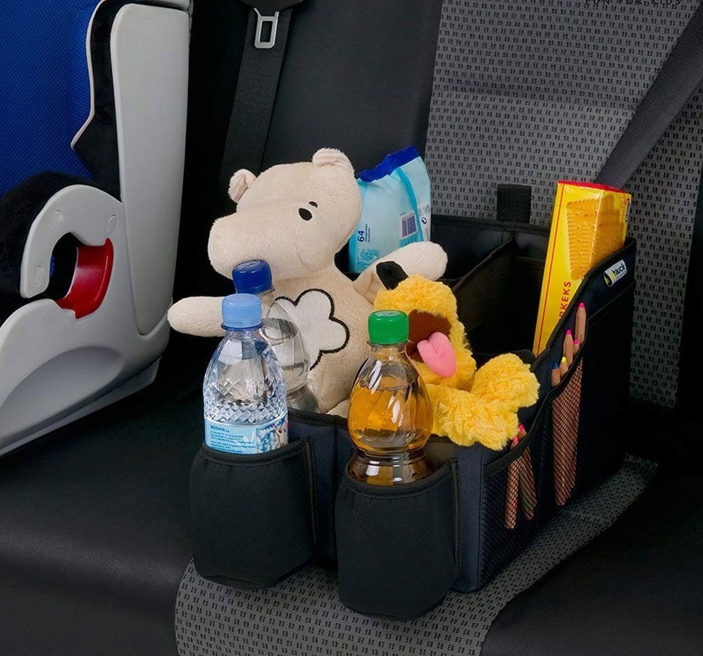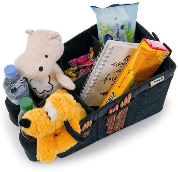 Этот гибкий органайзер отлично помещается на заднем сидением автомобиля или в багажнике. Вы можете сложить все детские аксессуары в удобную сумку-органайзер и быть уверенными, что все вещи сохранятся в порядке в течение вашей поездки. Органайзер изготовлен из водонепроницаемого жесткого материала. На заднем сидении предусмотрена возможность жесткой фиксации штатным ремнем вашего автомобиля.