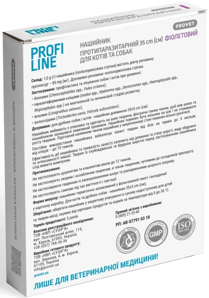 - Ошейник для кошек и собак инсектоакарицид ProVET Profiline Фиолетовый 35 см