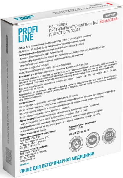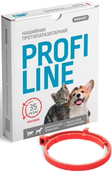 - Ошейник для кошек и собак инсектоакарицид ProVET Profiline коралловый 35 см