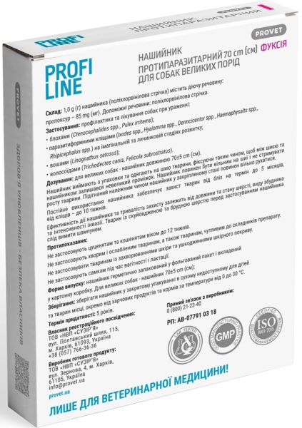 - Ошейник для собак для больших пород инсектоакарицид ProVET Profiline фуксия 70 см