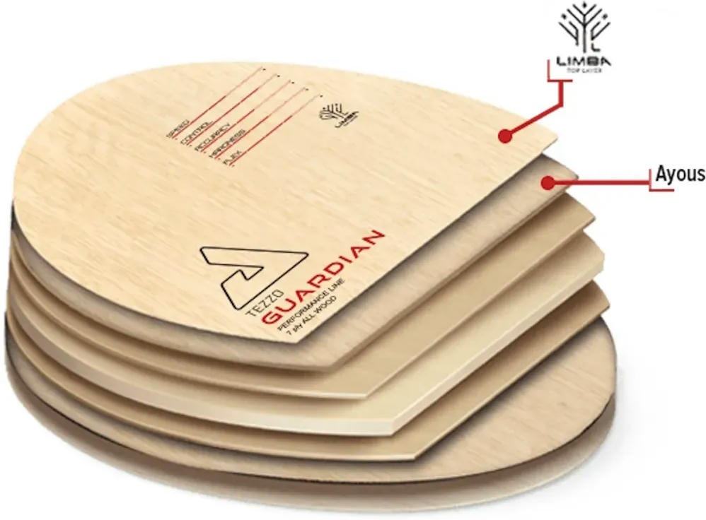 Limba Top Layer - верхний слой в лезвиях (основы для ракеток) используется шпон из дерева Limba. Эта африканская древесина имеет более мягкую структуру (Monnin hardness = 2.4) по сравнению с популярной древесиной Koto. Верхний слой Limba является идеальной древесиной для ракеток, которые сфокусированы на ускорении мяча путем вращения (spin). Идеально подходит для выполнения топ-спинов. Дополнительным бонусом древесины Limba являются превосходные акустические свойства. Она создает чрезвычайно приятный звук, который напомнит вам о вашей любви к игре.