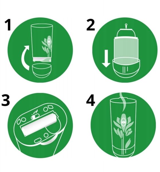 - Перед тем, как вставить аэрозоль, проверьте, что диспенсер выключен