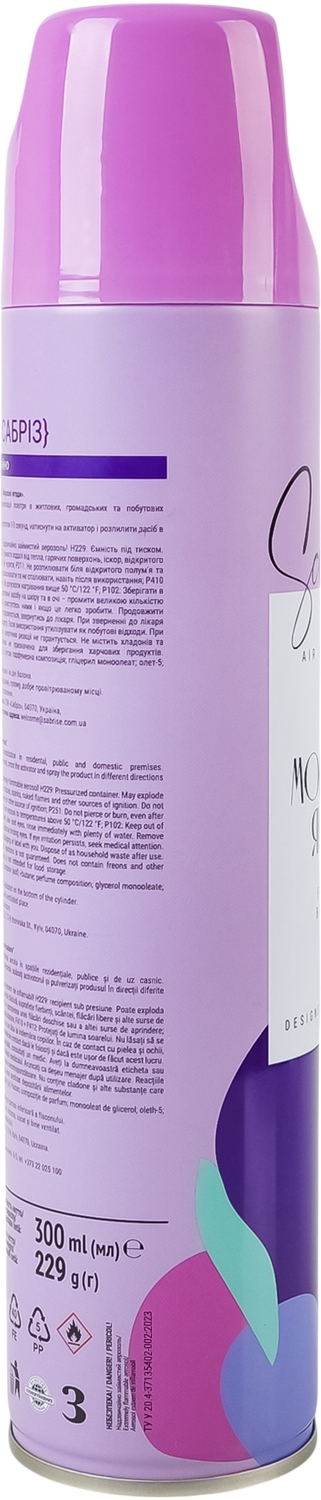 Освежитель воздуха Sabrise предназначен для освежения и ароматизации воздуха в жилых, общественных и бытовых помещениях, наполняя их приятным ароматом.