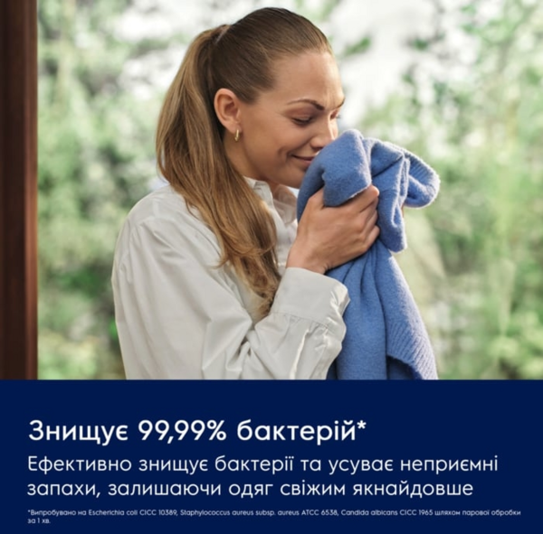 Верните одежде свежесть с помощью пара. Отпариватель эффективно уничтожает 99,99% бактерий и устраняет неприятный запах, поддерживая свежесть одежды еще дольше.