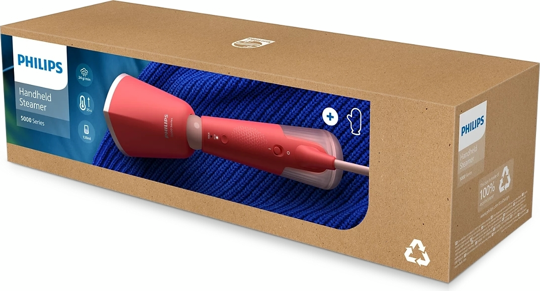 Ручной отпариватель Philips 5000 всегда готов к отпариванию в нужный момент. Просто установите насадку для отпаривания одежды на вешалке или плоской поверхности - и приступайте к работе. Благодаря регулируемому наклону головки устройство можно легко упаковать для путешествий и быстро и удобно хранить дома.