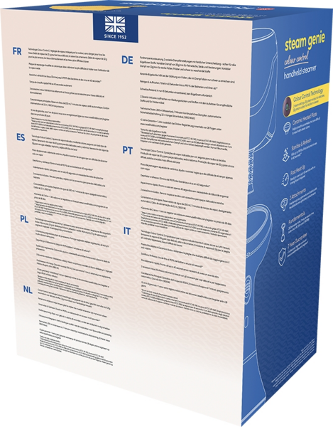 Ручной отпариватель Steam Genie Color Control от Russell Hobbs позволяет выровнять и освежить любую ткань. Легко справится со всем: от штор и толстых шерстяных пальто до шелковых рубашек. Он предлагает два режима подачи пара, поэтому вы можете разгладить как тончайший атлас, так и тяжелое шерстяное пальто за считанные секунды. Благодаря технологии Color Control, которая отображает параметры отпаривания с помощью двухцветных светодиодов, вы можете легко переключаться с голубого на зеленый цвет, чтобы отпаривать все - от одеял до джинсов. При этом она не только сбалансирует ткань, но и освежает ее. Благодаря высокой мощности пара он уничтожает до 99,9% бактерий и вирусов всего за 60 секунд, поэтому дарит вам приятную свежесть одежды и душевное спокойствие.