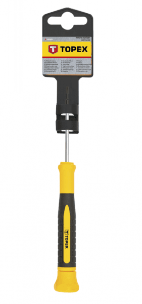 Отвертка прецизионная крестовая TOPEX предназначена для выполнения механических работ, а также работ, выполняемых мастерами-любителями. Стержень изготовлен из прочной хромомолибденовой стали, обеспечивающей долгий срок службы инструмента. Магнитное жало из закаленной стали облегчает работу. Поворотный наконечник повышает функциональность и позволяет выполнять точную работу. Эргономичная пластмассовая рукоятка, покрытая антискользящим материалом, обеспечивает безопасность и комфорт во время работы. Бренд TOPEX предназначен для домашних мастеров.
